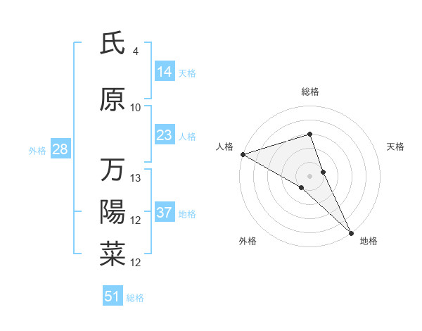 氏原 万陽菜さんを姓名の画数から五運を鑑定