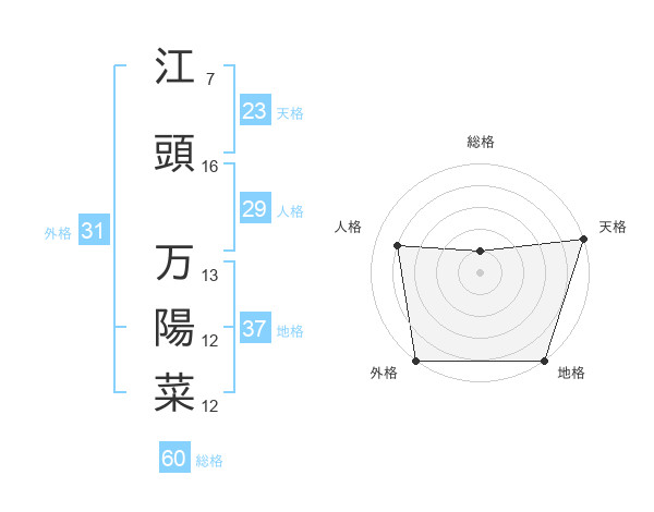 江頭 万陽菜さんを姓名の画数から五運を鑑定