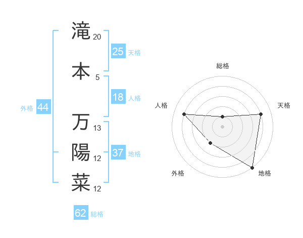 滝本 万陽菜さんを姓名の画数から五運を鑑定