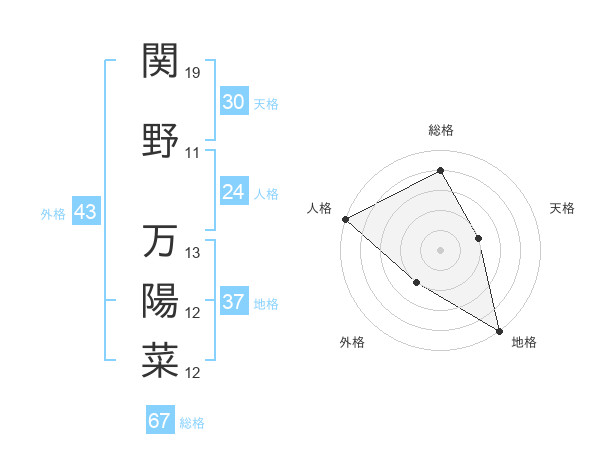 関野 万陽菜さんの総格は67画の4点