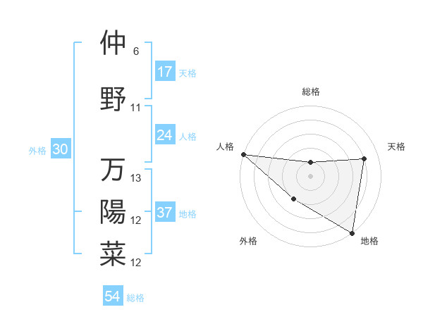 仲野 万陽菜さんを姓名の画数から五運を鑑定
