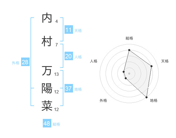 内村 万陽菜さんの総格は48画の4点
