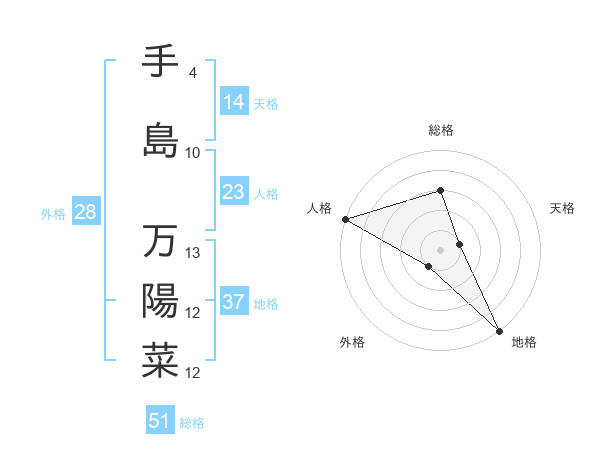 手島 万陽菜さんを姓名の画数から五運を鑑定