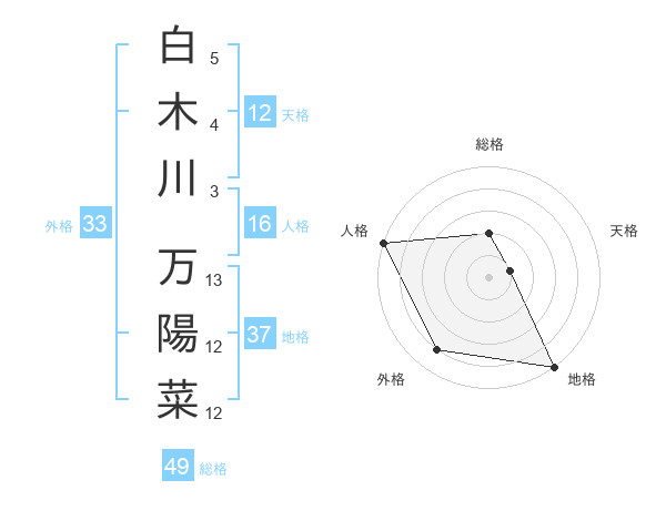 白木川 万陽菜さんを姓名の画数から五運を鑑定