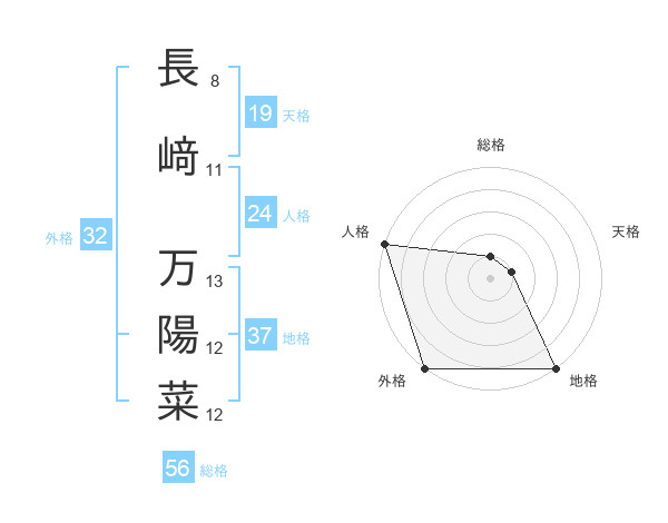 長﨑 万陽菜さんを姓名の画数から五運を鑑定