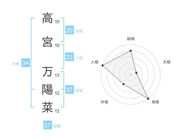 高宮 万陽菜さんを姓名の画数から五運を鑑定