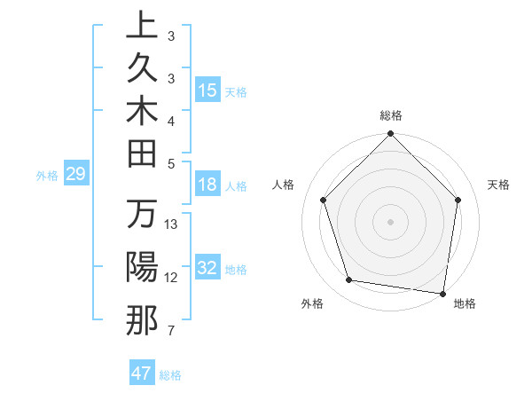 上久木田 万陽那さんの総格は47画の5点!