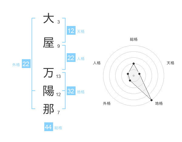 大屋 万陽那さんを姓名の画数から五運を鑑定