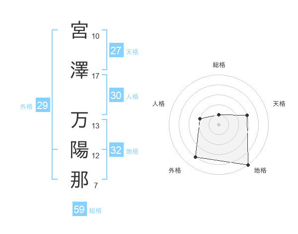 宮澤 万陽那さんを姓名の画数から五運を鑑定