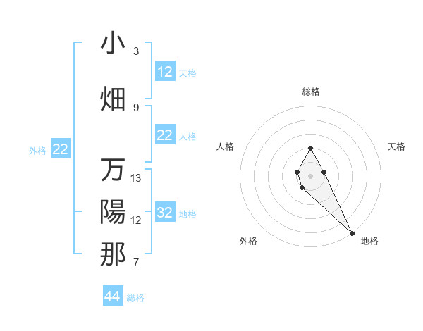 小畑 万陽那さんを姓名の画数から五運を鑑定