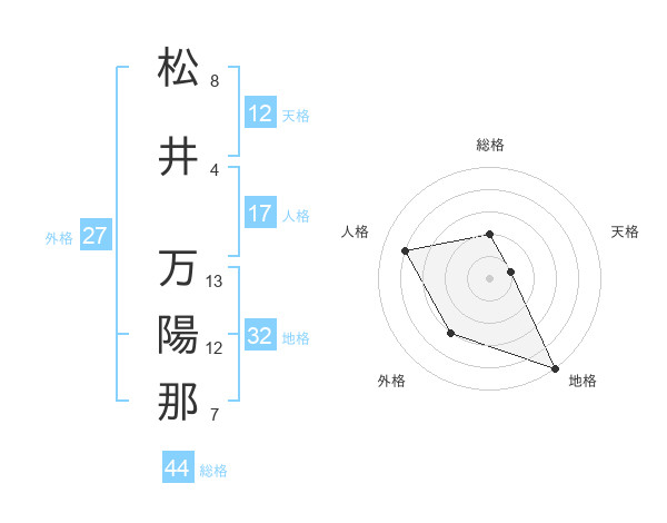 松井 万陽那さんを姓名の画数から五運を鑑定