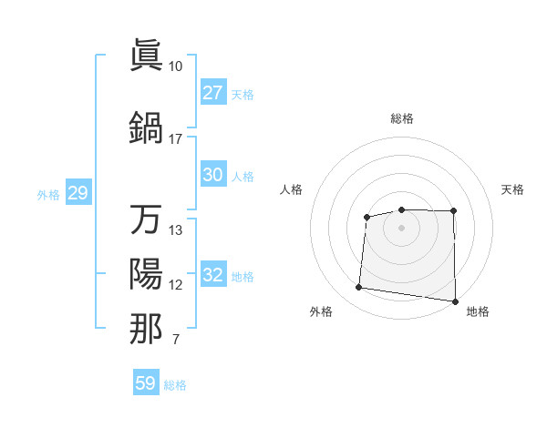 眞鍋 万陽那さんを姓名の画数から五運を鑑定