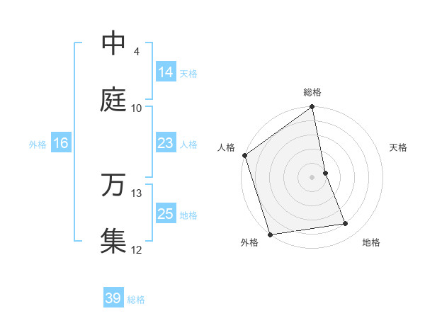 中庭 万集さんの総格は39画の5点!