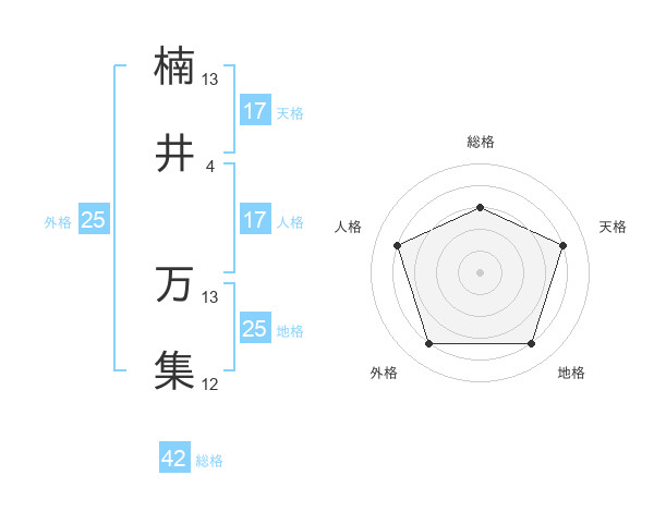楠井 万集さんの天格は17画の4点!