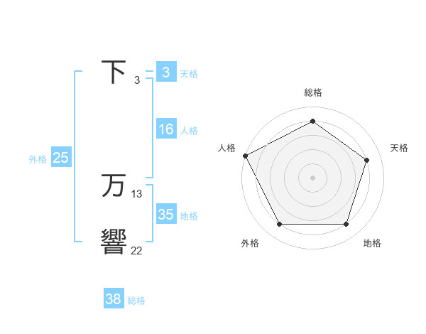 下 万響さんの総格は38画の4点!