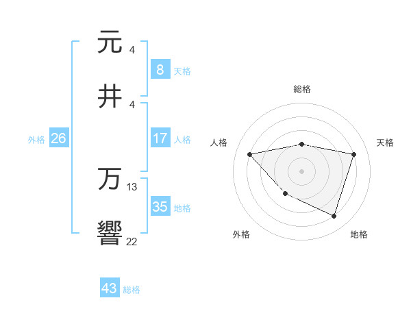 元井 万響さんの天格は8画の4点!