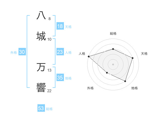 八城 万響さんの総格は53画の3点!