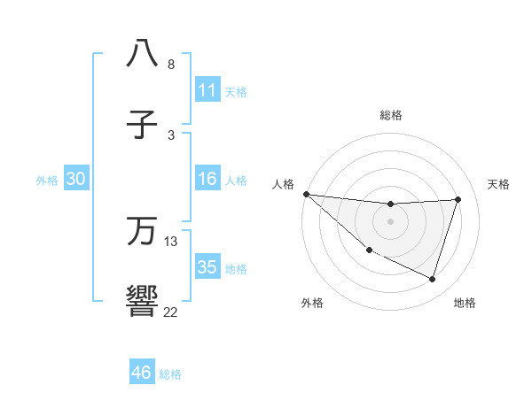 八子 万響さんの総格は46画の1点!