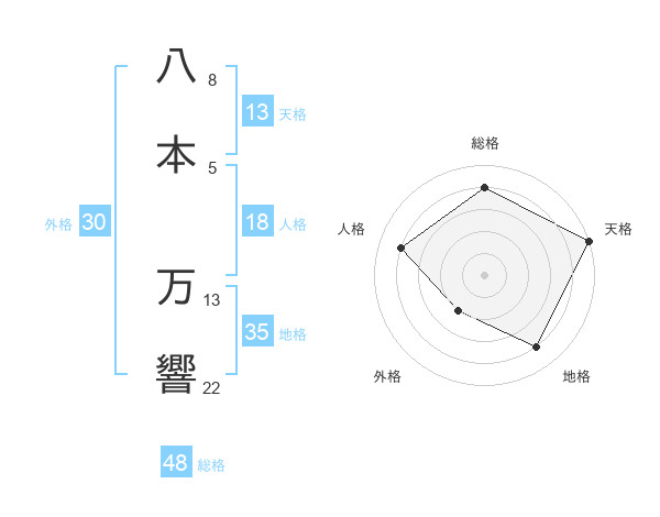 八本 万響さんの天格は13画の5点!