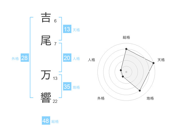 吉尾 万響さんの天格は13画の5点!