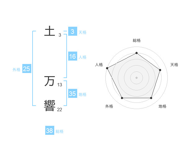 土 万響さんの総格は38画の4点!