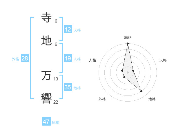 寺地 万響さんの総格は47画の5点!