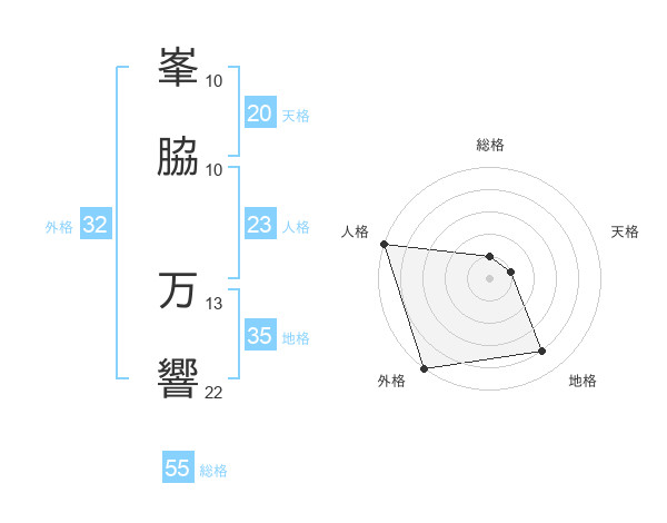 峯脇 万響さんを姓名の画数から五運を鑑定
