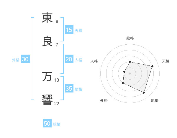 東良 万響さんの総格は50画の2点!