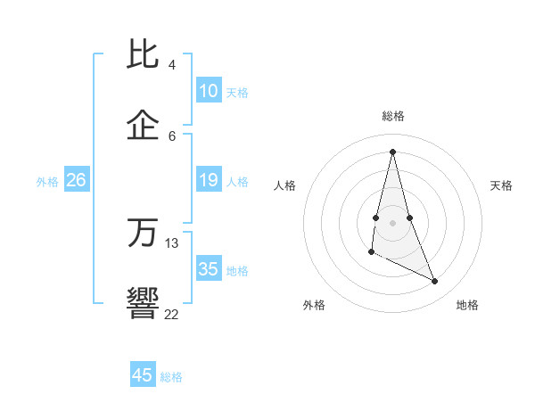 比企 万響さんの総格は45画の4点!