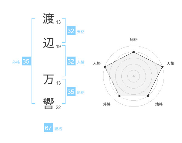 渡辺 万響さんの総格は67画の4点!