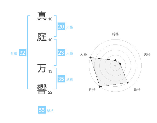 真庭 万響さんの外格は32画の5点!