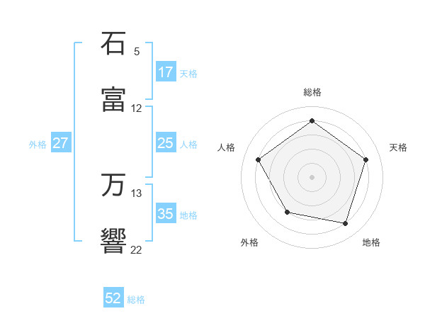 石富 万響さんの総格は52画の4点!
