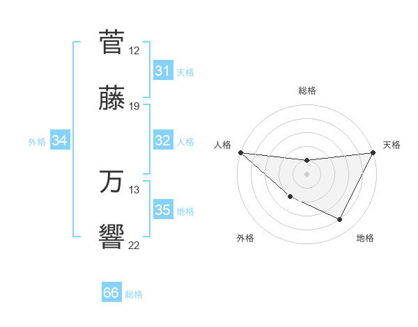菅藤 万響さんを姓名の画数から五運を鑑定