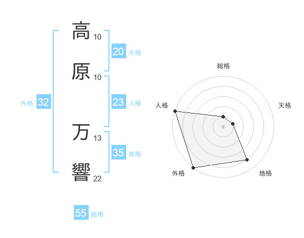 高原 万響さんの総格は55画の1点!
