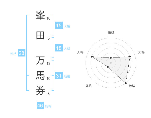 峯田 万馬券さんの総格は46画の1点!