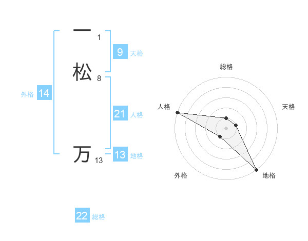 一松 万さんの地格は13画の5点!