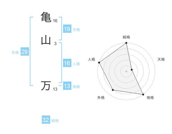 亀山 万さんの天格は19画の1点!