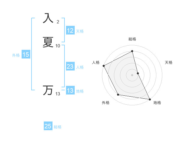 入夏 万さんの総格は25画の4点!