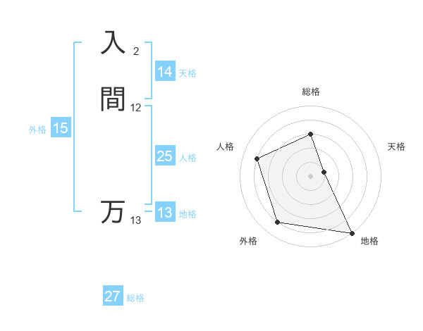 入間 万さんの総格は27画の3点!