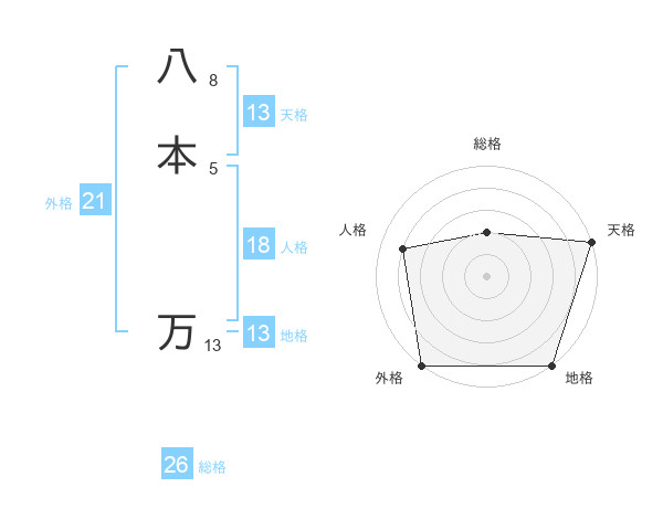 八本 万さんの外格は21画の5点!