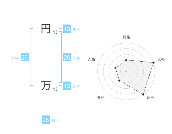 円 万さんの総格は26画の2点!