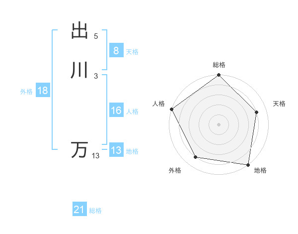 出川 万さんの総格は21画の5点!