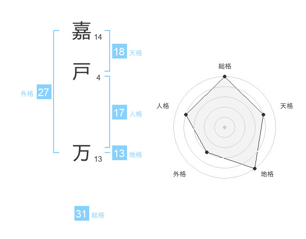 嘉戸 万さんを姓名の画数から五運を鑑定