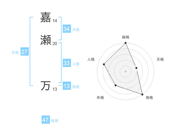 嘉瀬 万さんを姓名の画数から五運を鑑定