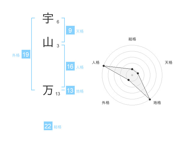 宇山 万さんの総格は22画の1点!