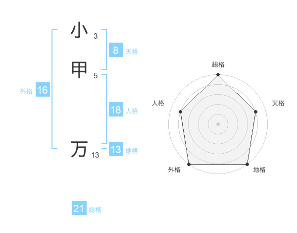 小甲 万さんの地格は13画の5点!