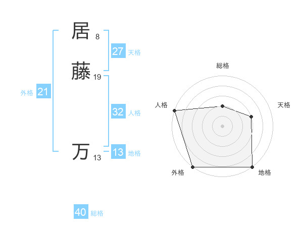 居藤 万さんの外格は21画の5点!