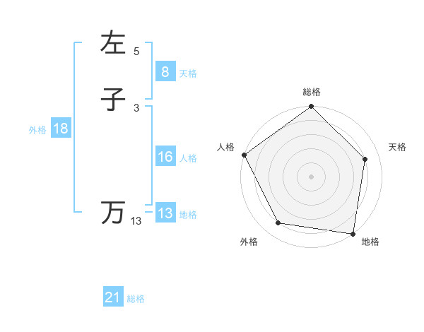 左子 万さんの総格は21画の5点!