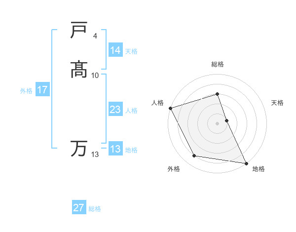 家系が持つ宿命的な運勢を表します。祖先から受け継いだ苗字ですので自分の力が及びません。家柄を象徴します。