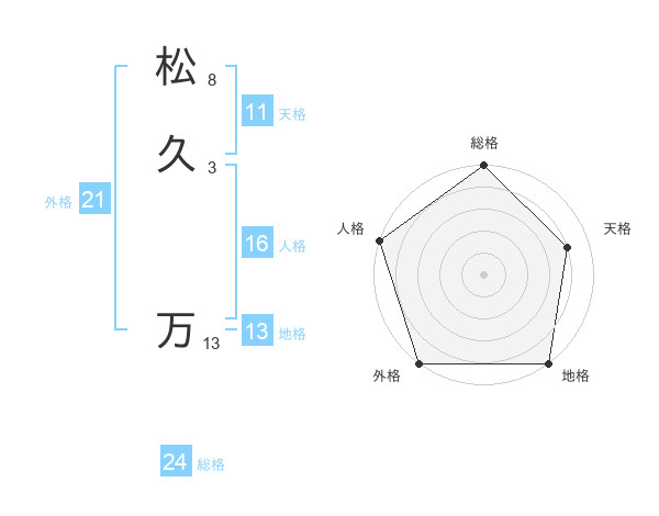 松久 万さんの総格は24画の5点!